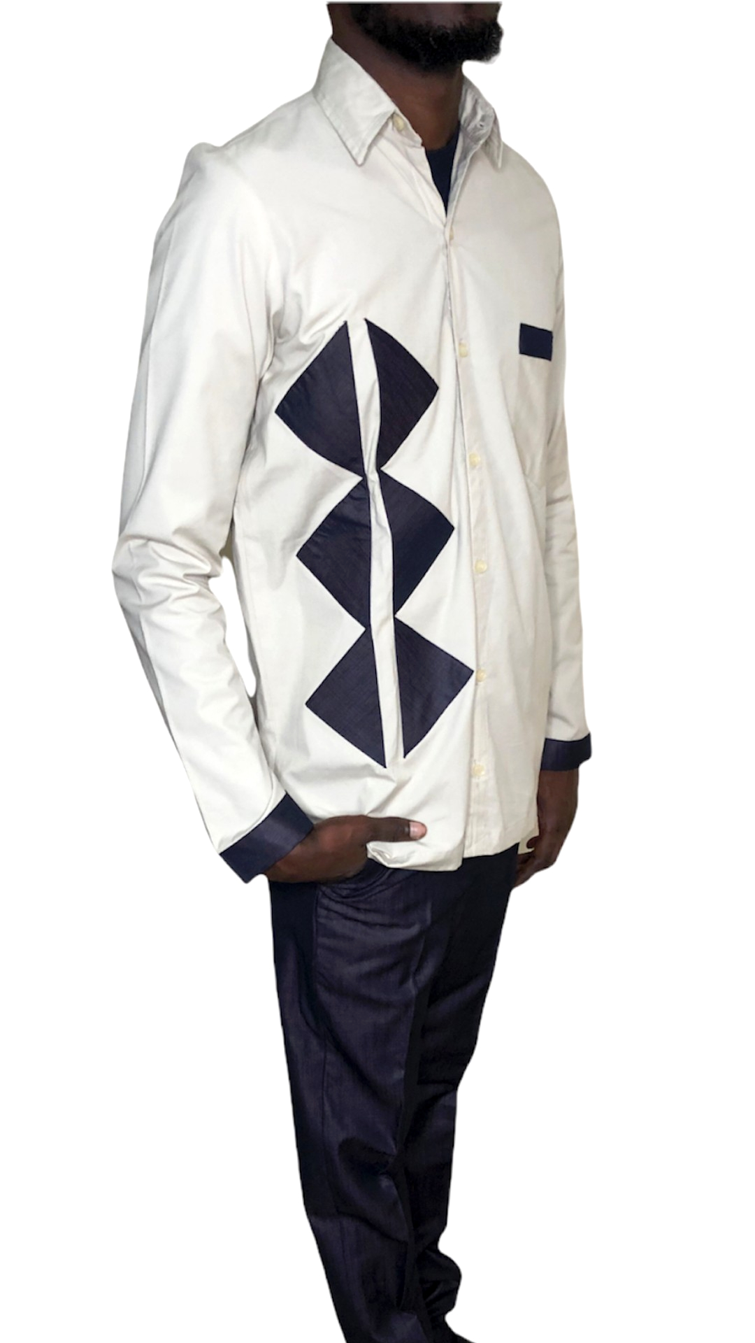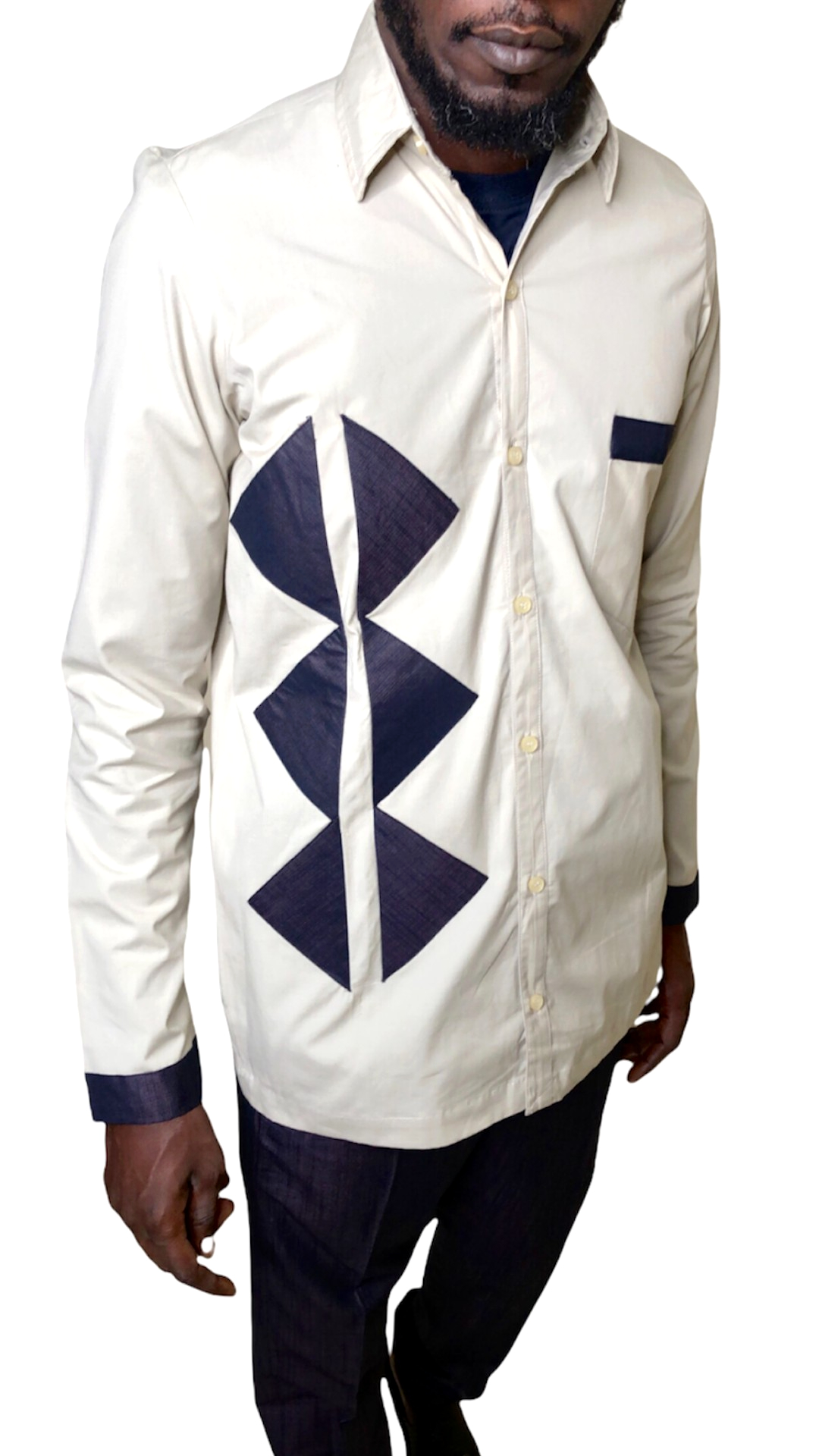 BACHIR, notre ensemble pantalon et chemise tendance et original. Cette tenue est composée d’une chemise beige à manches longues ornée des motifs géométriques et d’un pantalon mauve. Ce bel ensemble est très branché et idéal pour vos looks décontracté en toute élégance.