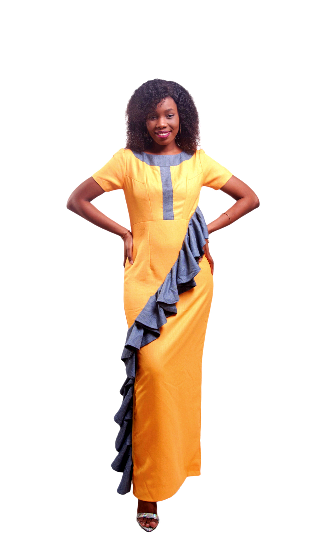 KAREN notre maxi dress bicolore à volant est élégante et originale. Cette jolie robe longue à manches courtes est doté d’un design simple et original. Elle est confectionnée avec une couture sur le cou en forme de T et d’un joli volant plissé oblique sur la devanture et d’une fente à l’arrière. l’association des couleurs jaune et gris est très tendance et lui apporte du style. Cette robe est idéale pour les beaux jours.