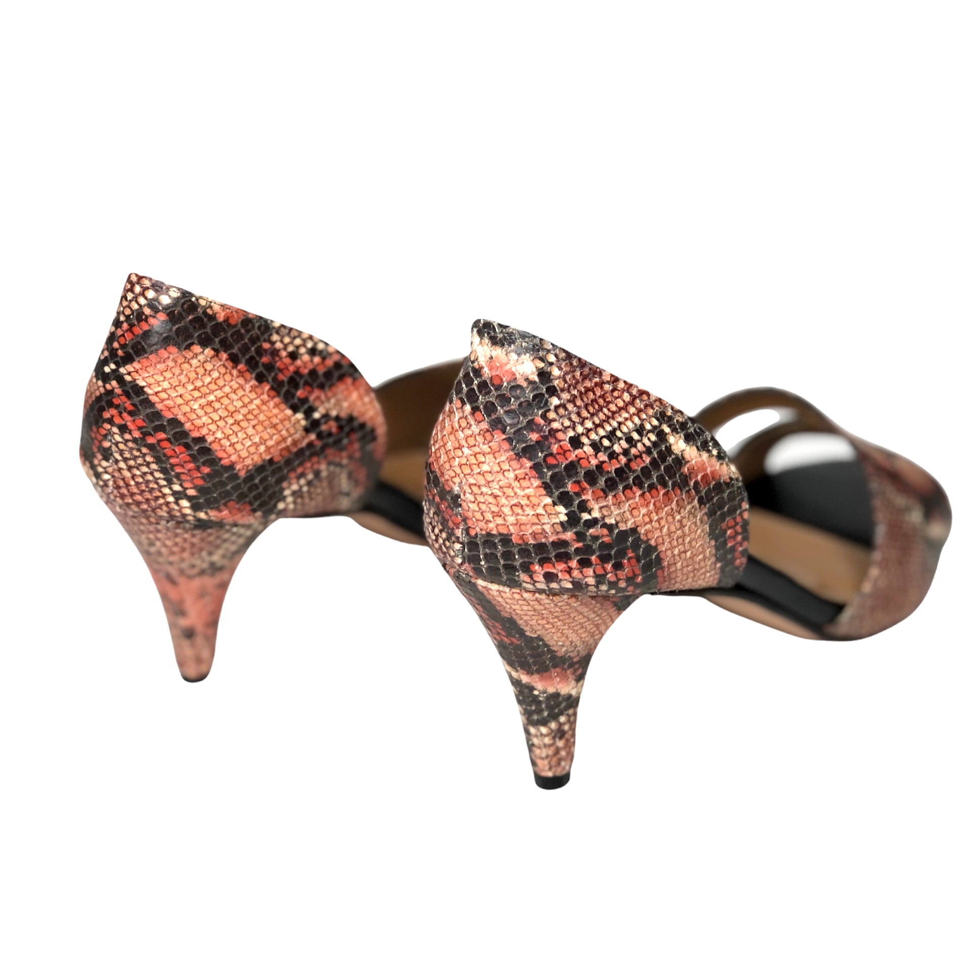 LENA notre jolie paire d’escarpin à bout ouvert ultra tendance. Elle est confectionnée en cuir imprimé multicolore et en cuir lisse noir qui font tout son style. Elle est très élégante et tendance avec son design original décolleté et son talon aiguille. À la pointe de votre féminité, cet escarpin est au top des dernières tendances.